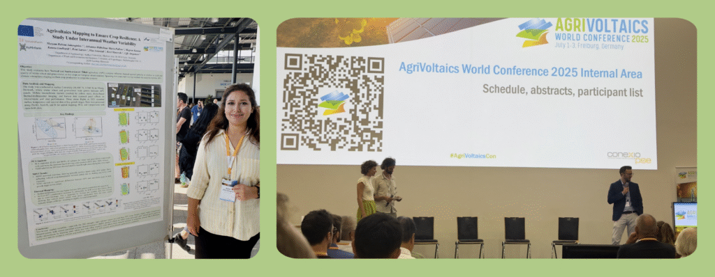 📍 The poster, “Agrivoltaics Mapping to Ensure Crop Resilience: A Study Under Interannual Weather Variability,” showcased results from Danish field trials under vertical PV systems, focusing on crop performance across different weather conditions.